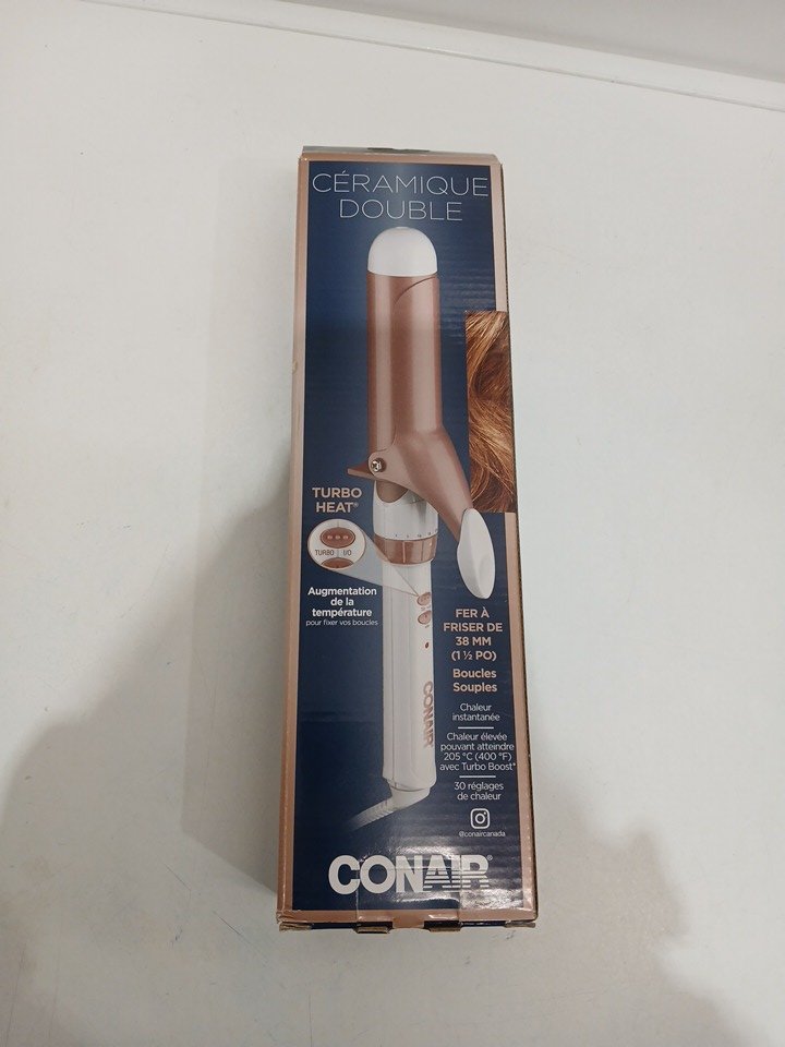 CONAIR DOUBLE CERAMIC CURLING IRON - 1 1/2" - WHITE/ROSE GOLD (MODEL: CD703GN)