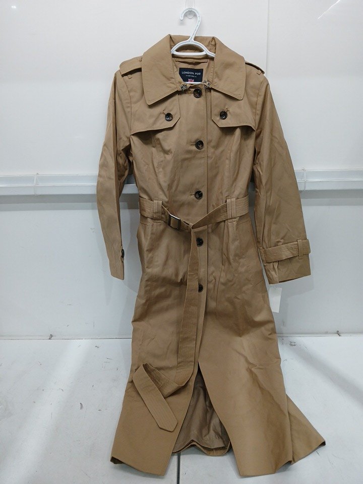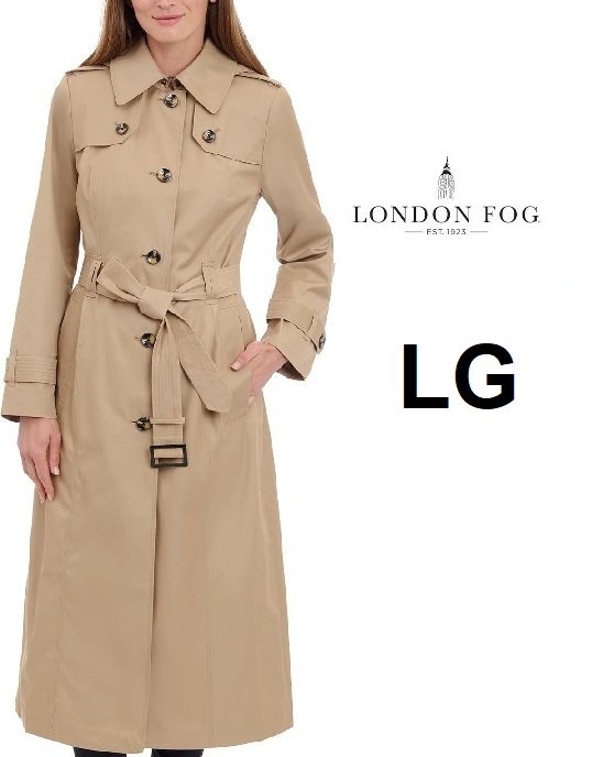 WOMEN'S London Fog Single Breasted Long Trench Coat With Epaulettes, Belt, and hood - large - BrOWN Khaki (STYLE: L712696A93)