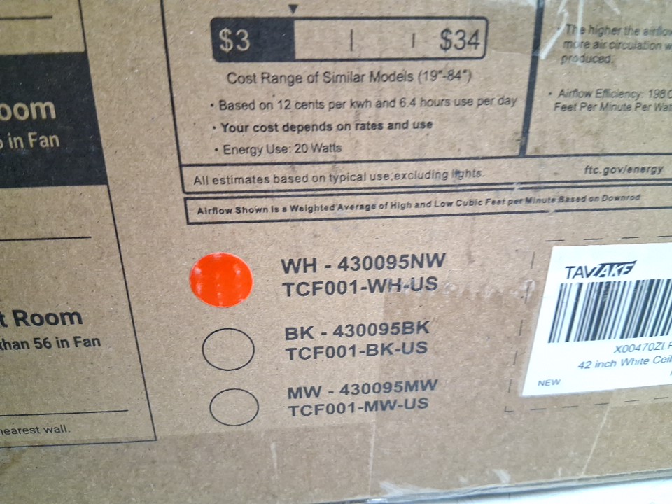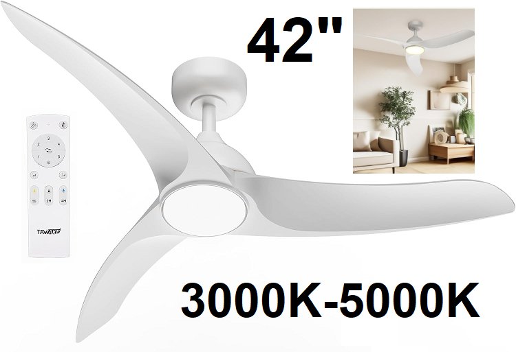 tavzake low profile ceiling fan with lights - 42" - white (MODEL: tcf001-wh-us)