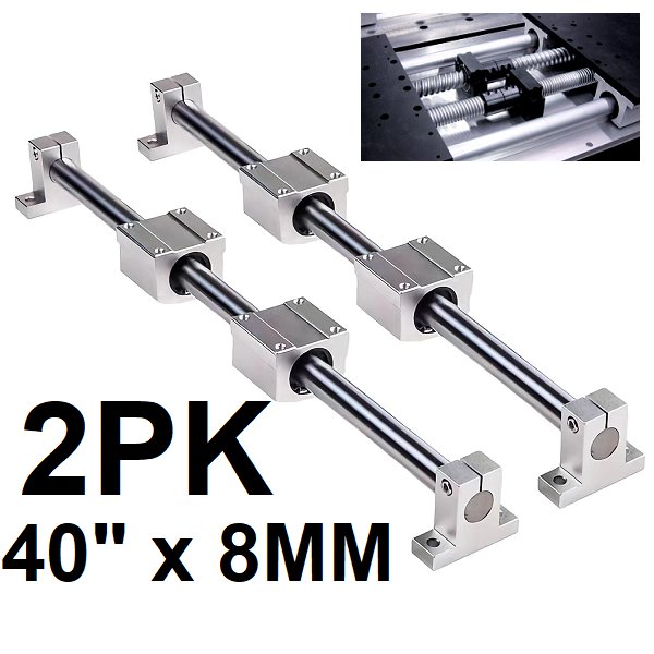 2pk Coavoo Linear motion slide rods for 3D printer or CNC machine with guides and mounts - 40" x 8MM - silver