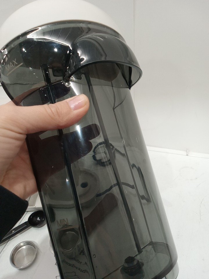 Has some scratches on the container, and coffee stains see photos. Tested for power