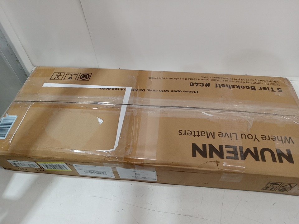 numenn 5-tier bookshelf with metal frame and wooden shelves - 23.6" x 11.8" x 62.2" - 30LBS Capacity - brown/black (model: C03)