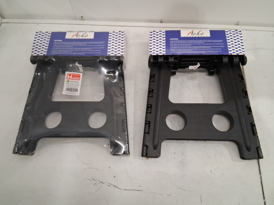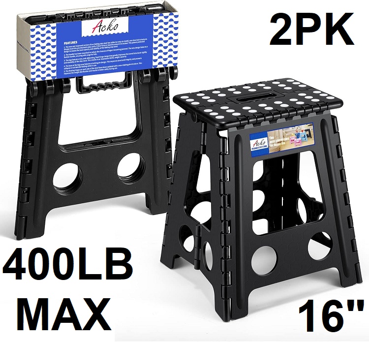 2pk ACKO Heavy Duty FOLDING STEP STOOL - 400lbs max cap - 16" - black