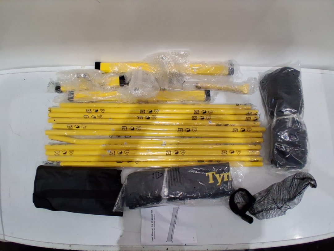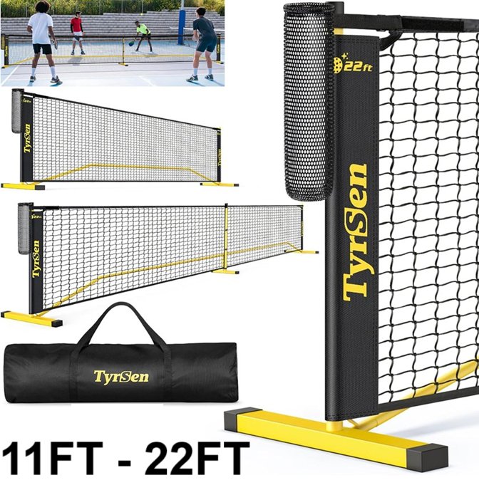 TYRSEN standard to half court size pickle ball net set with ball collector and carrying bag - 11ft-22ft - black/yellow