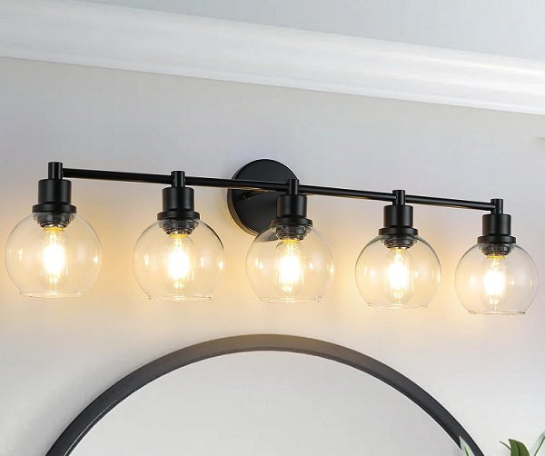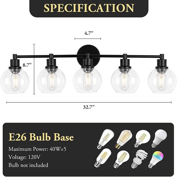 5-light globe over the mirror light fixture - 32.7" x 8.7" - Black - (Model: W2402-5)