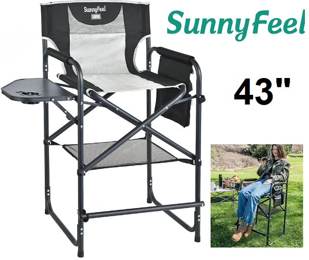 SUNNYFEEL Tall Directors Chair with Side Table - 43" - black