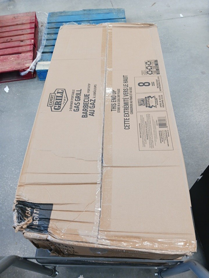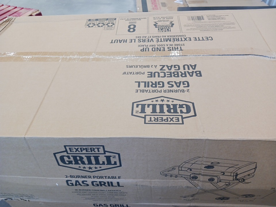 Expert Grill 2-Burner Foldable Propane Gas Grill with Fold-Out Side Shelves, 20,000 BTU Dual Cast-Iron Grates, Piezo Ignition, Foldable Legs & Wheels, Weather-Resistant Construction and Propane Tank Connection - Black / Grey (Model GBC2519W-C)