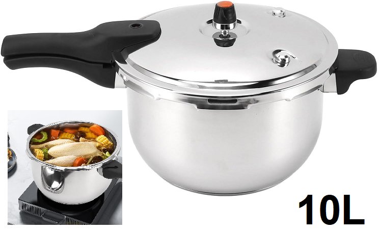 EFFICIENT AND DURABLE PRESSURE COOKER - 10L - STAINLESS STEEL