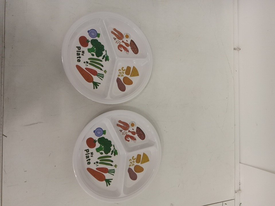 2PK Viynran 3-Grid Cute Cartoon Portion Control Plate - 10" x 10" - Multicolour (Model: ‎40611CCPO02)