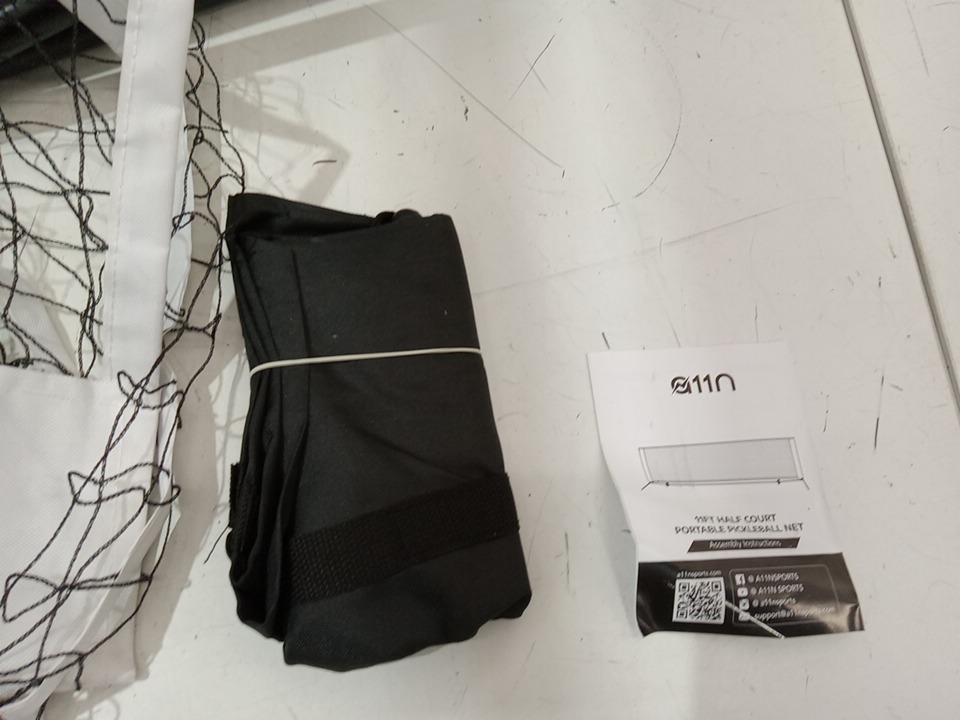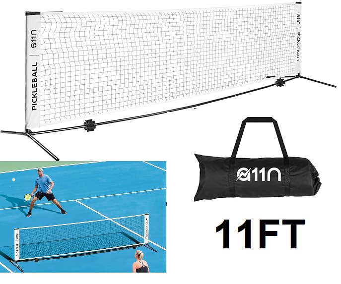 a11n portable all weather half court pickleball net system with carrying bag - 11ft x 36" x 37" - white / black