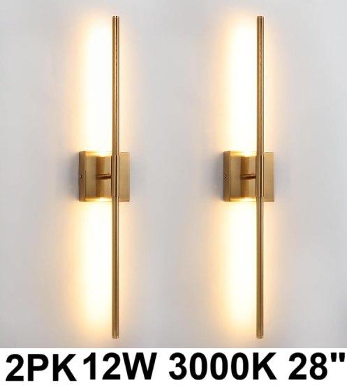 2PK KUZZULL WALL MOUNTED LAMP - 12W 3000K - 28" - BRUSHED GOLD