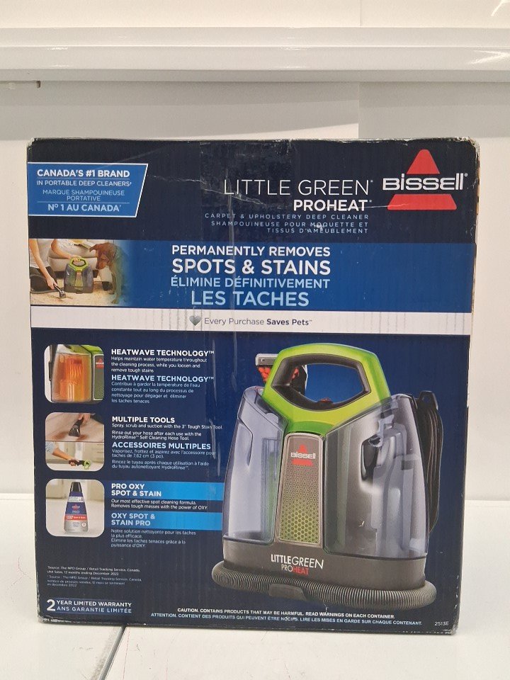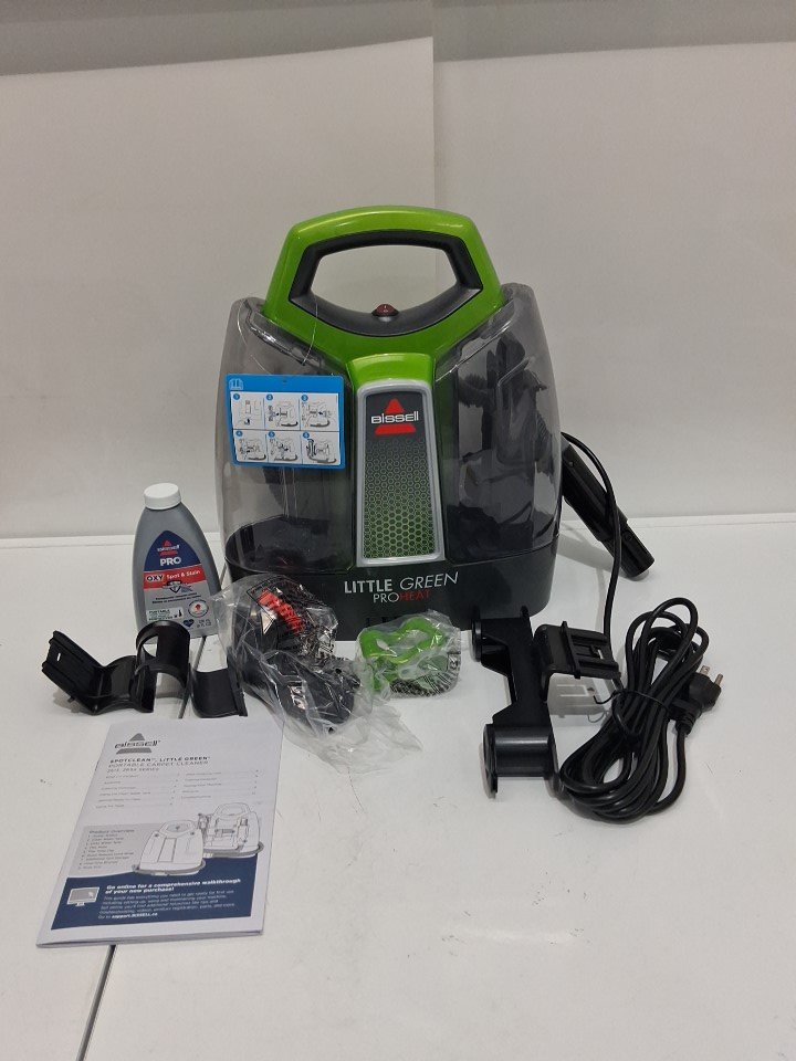 BISSELL LITTLE GREEN PROHEAT PORTABLE DEEP CLEANER/SPOT CLEANER WITH SELF-CLEANING HYDRORInSE TOOL - GREEN/GREY (MODEL: 2513e)