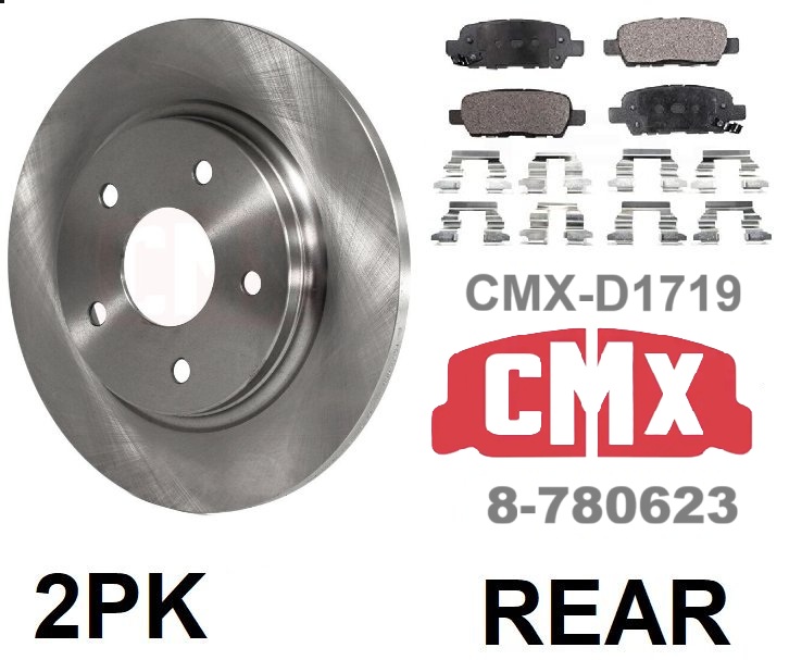 2PK CMX REAR DISC BRAKE ROTORS WITH cmx-d1596 CERAMIC BRAKE PADS for various makes and models (MODEL: 8-780623)
