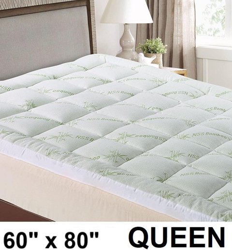 Premium BAMBOO MATtRESS TOPPER for Back Pain - QUEEN (60" x 80") - white/green