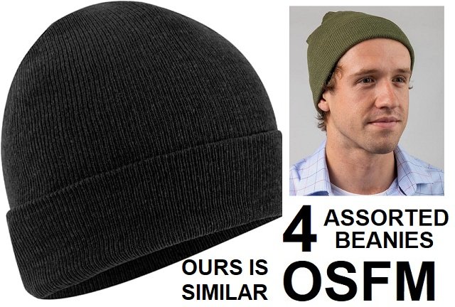 4 Assorted Adults Fine knit extra soft toque beanies - OSFM - forest green/black