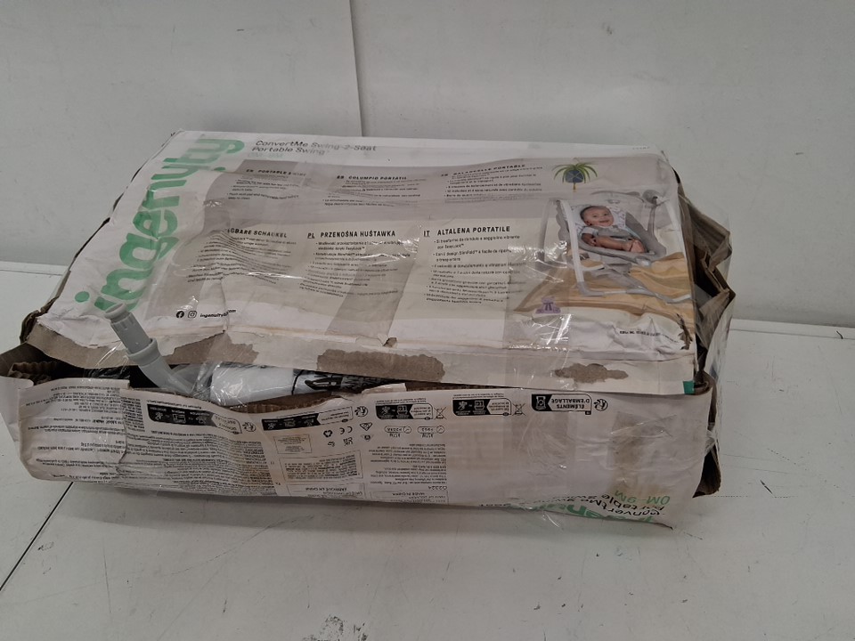 INGENUITY CONVERTME SWING 2-SEAT, BATTERY-SAVING PORTABLE SWING - 0M-9M - RAYLAN GREY - (MODEL: 12189-ES)