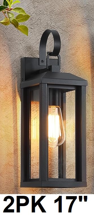 2pk SNRU outdoor waterproof wall mounted light fixture - 17" - matte black (model: wl211b)