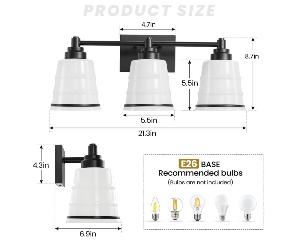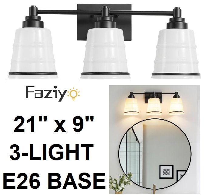Faziyo 3-light vanity light fixture - hardwired - 21" x 9" - black/white - (model: 9206vl-03bk-0nb)