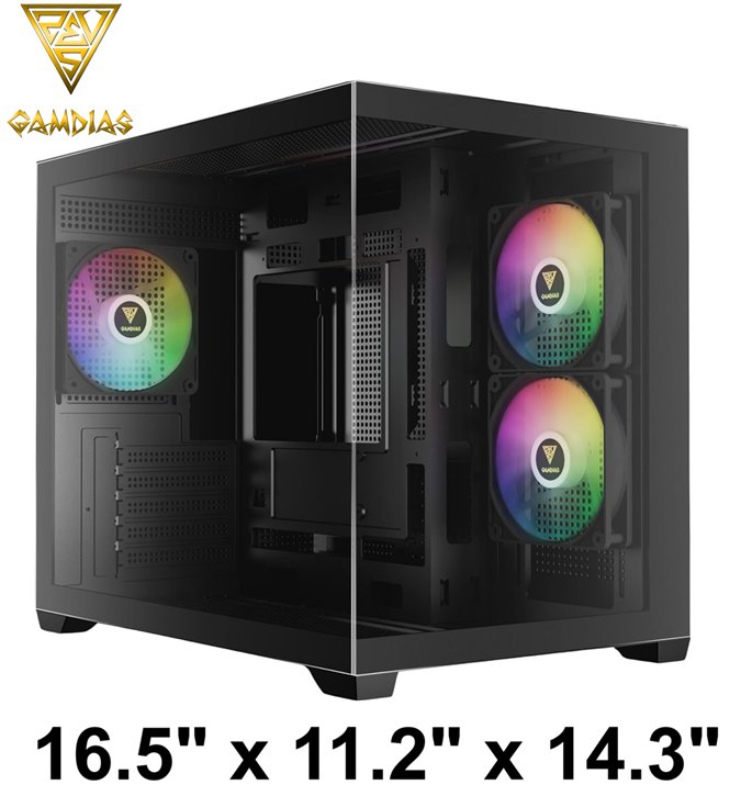 Gamdias Aura GC10M ARGB Micro-ATC Tower Computer Case With Tempered Glass - 16.5" x 11.2" x 14.3" - Black (Model: Aura GC10M ARGB)