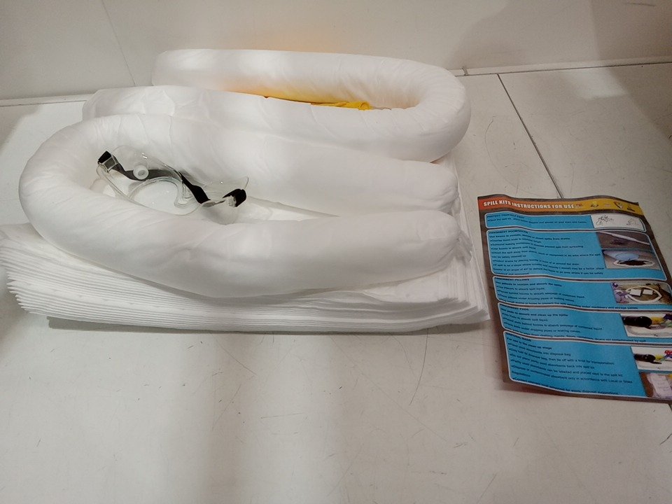 27pc OIL and FUEL Spill Kit with Oil Absorbent Pads and socks, disposable bag and gloves/goggles - Cleans up to 23L - yellow/white