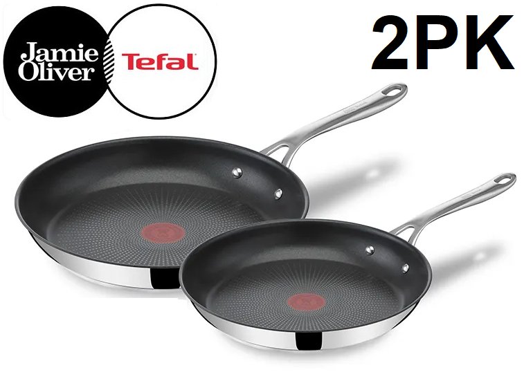 2pc jamie oliver by tefal stainless steel non-stick frying pan set with induction - 9" and 11" - black (model: e304s244)