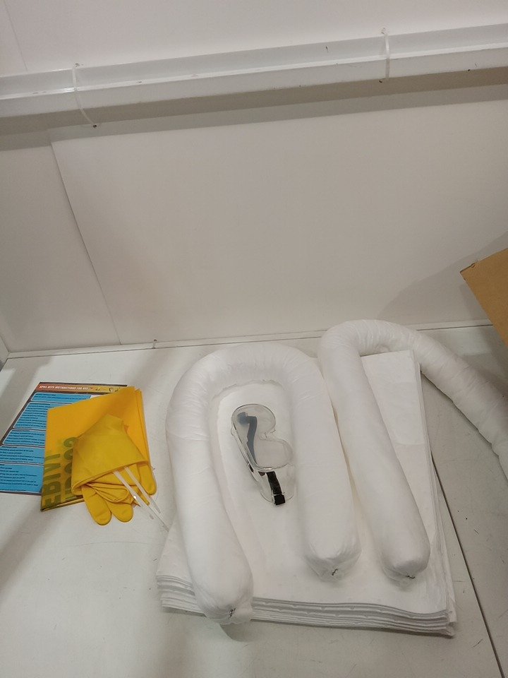 27pc OIL and FUEL Spill Kit with Oil Absorbent Pads and socks, disposable bag and gloves/goggles - Cleans up to 23L - yellow/white