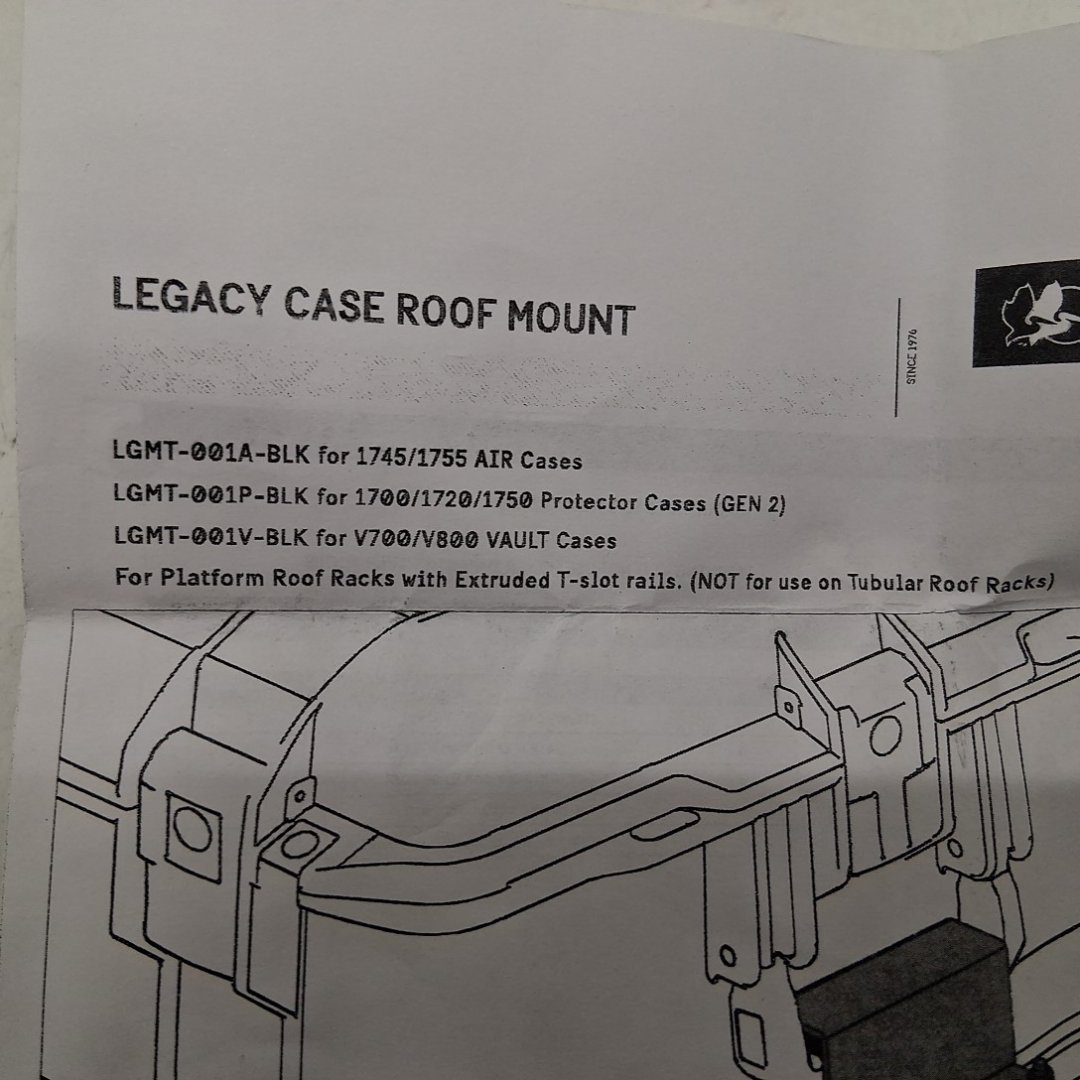 2pk pelican legacy vault case roof mount - black - only compatible with certain cases (model: LGMT-001v-BLK)