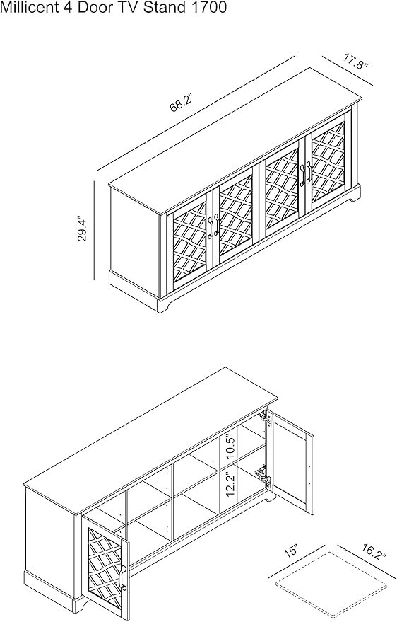 Galano Millicent TV Stand for up to 75" TV’s - 68" - dusty grey oak (model: fg-di-pu-19-794-gt)
