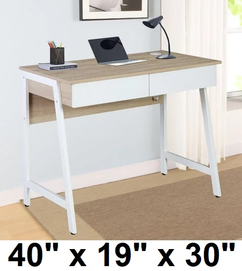 Mainstays 2-Drawer Computer Desk with USB Charger - 40" x 19" x 30" - White/Natural (MODEL: CT-2008)