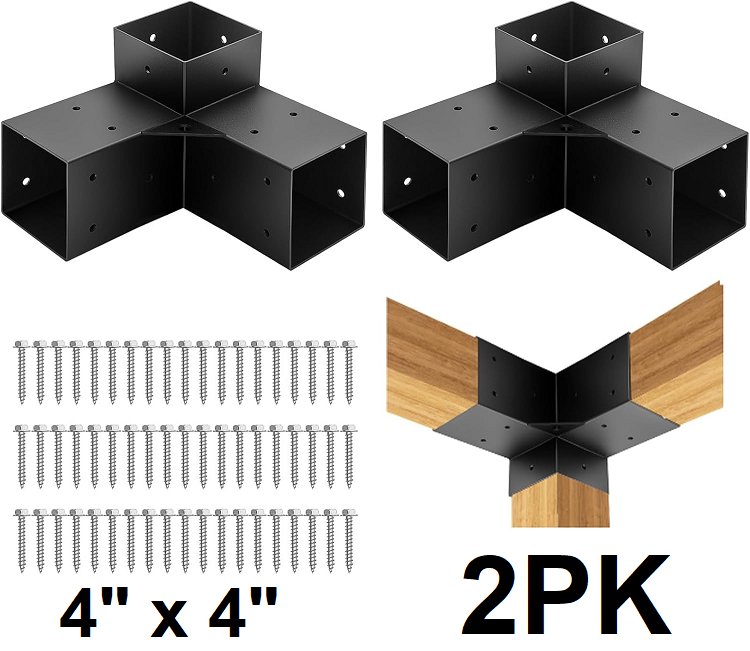 2pk colinktool 3 way right angle pergola brackets for 4" x 4" wooden posts - black
