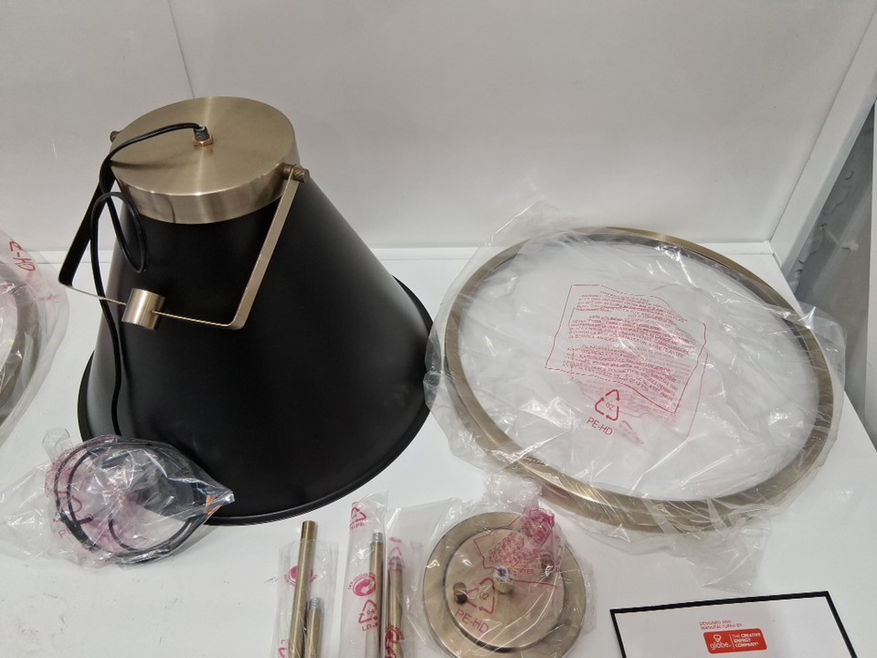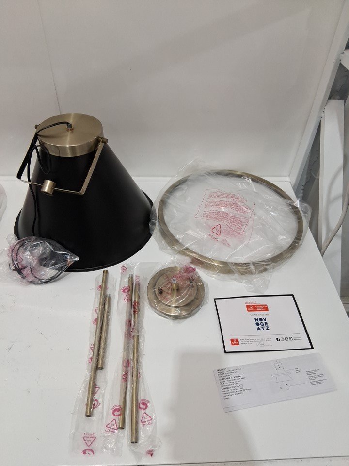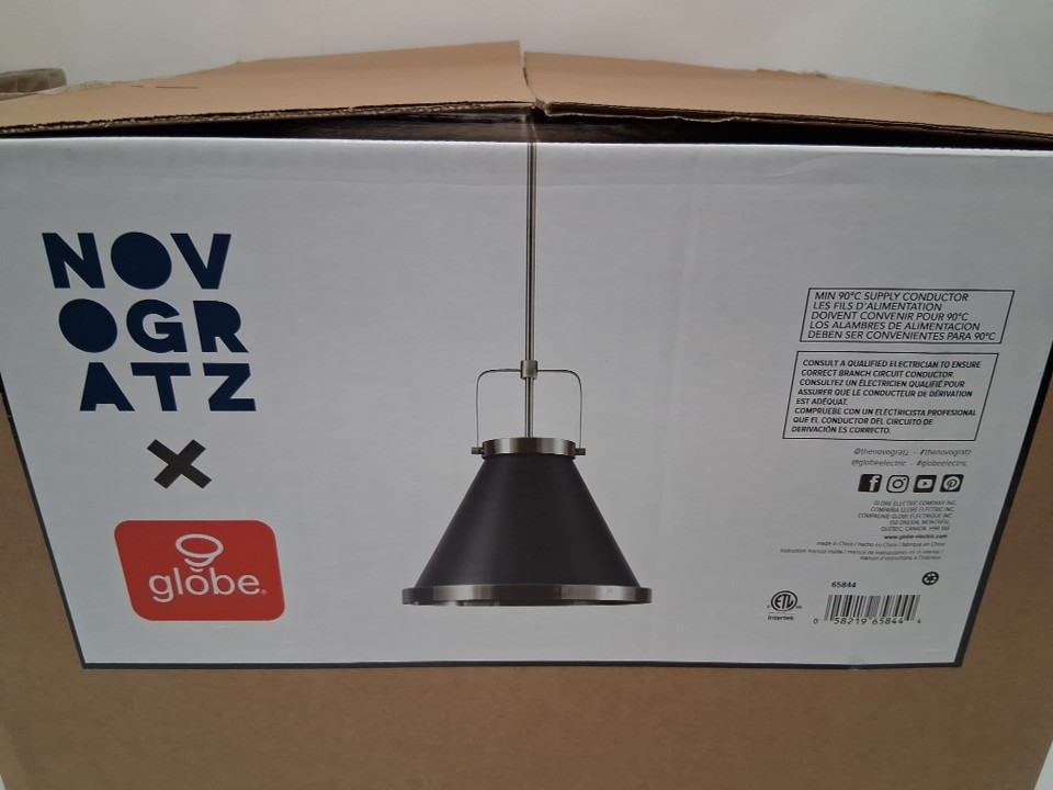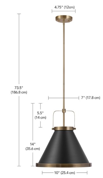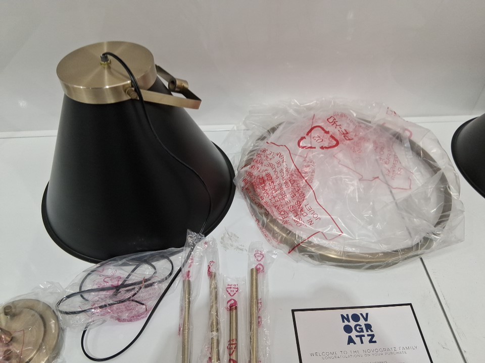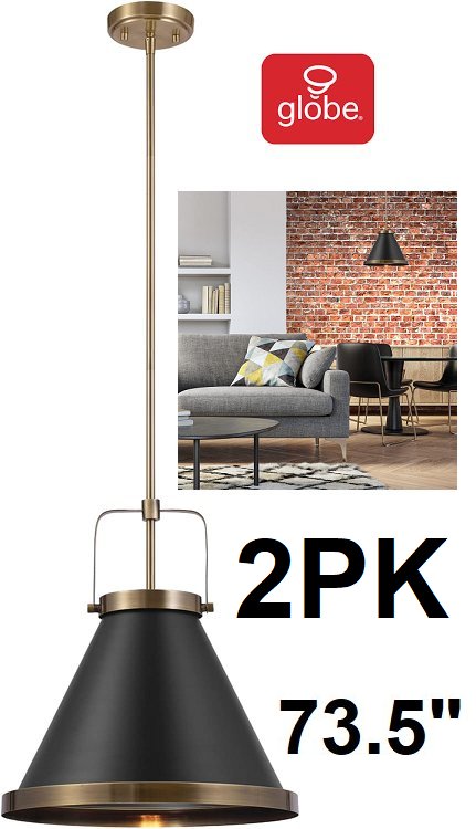 2PK Novogratz x Globe Electric industrial style pendant light fixture - 73.5" x 7" - matte black/matte brass (MODEL: 65844)