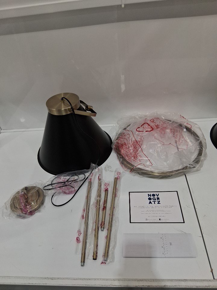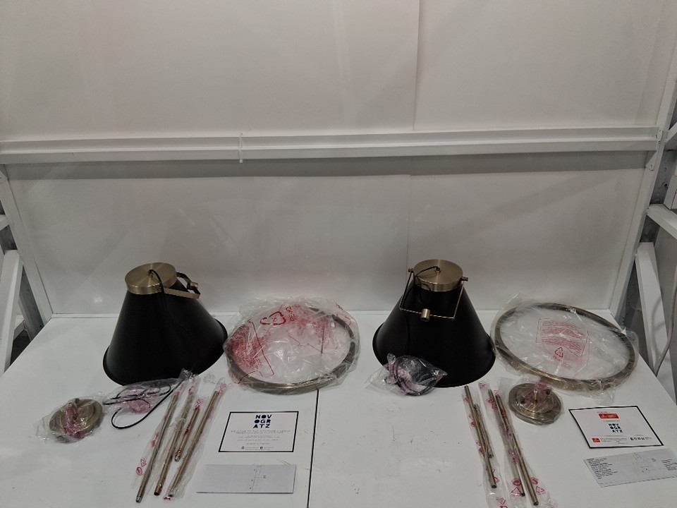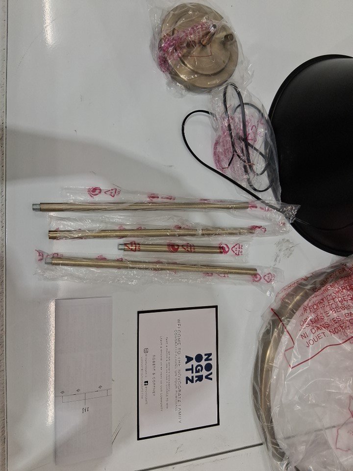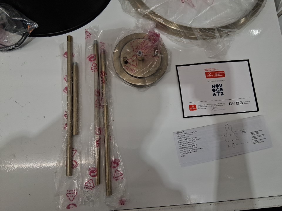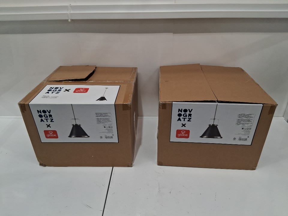 2PK Novogratz x Globe Electric industrial style pendant light fixture - 73.5" x 7" - matte black/matte brass (MODEL: 65844)