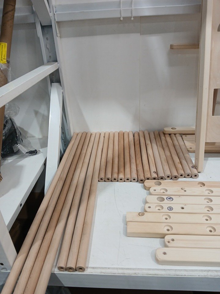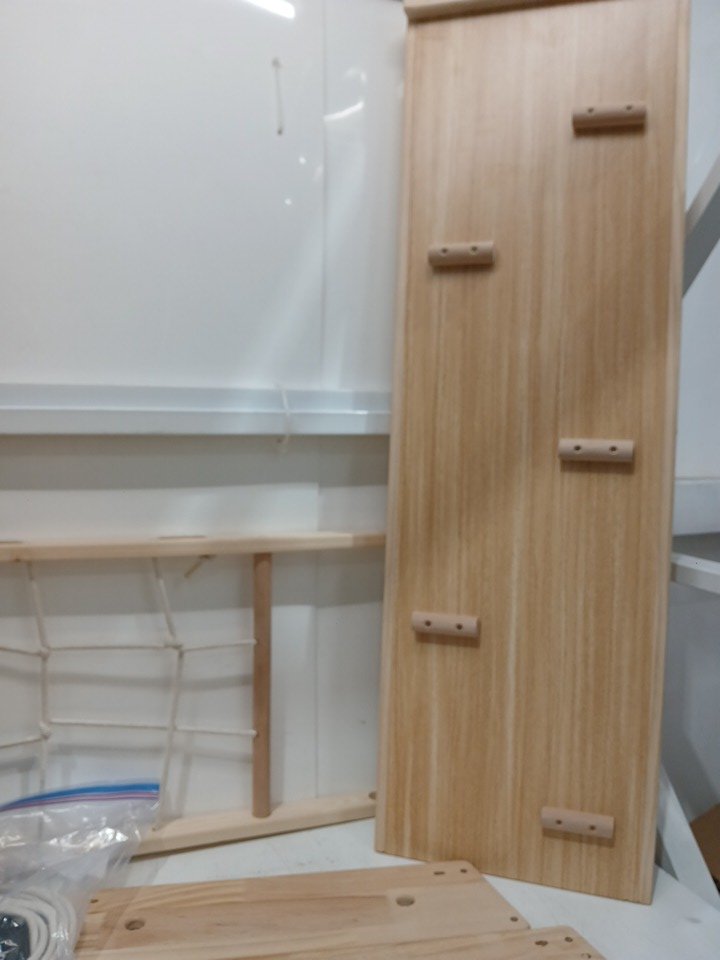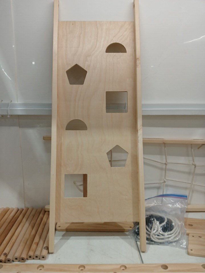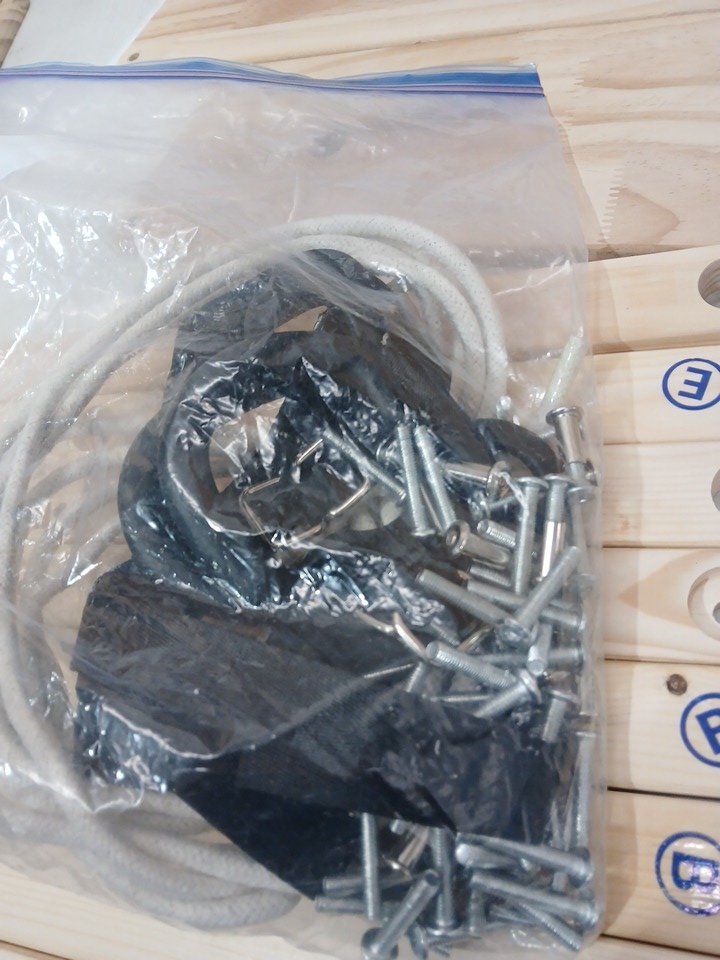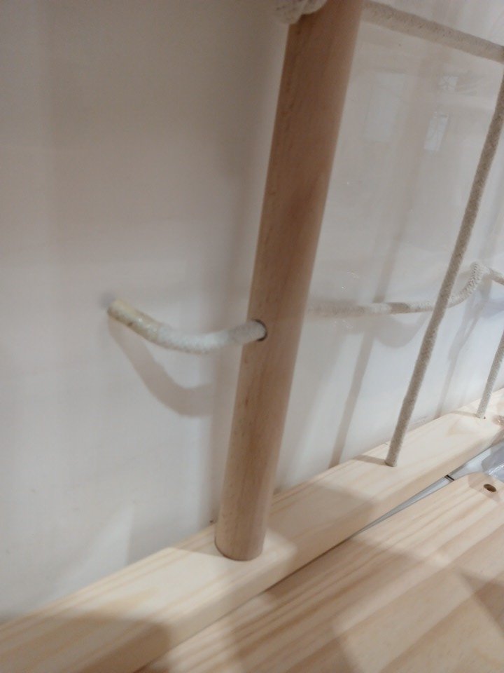 There are some imperfections in some of the wood pieces. The rope need to be re-tied on the netting.