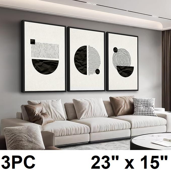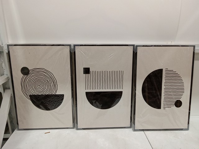 3pc framed decorative boho style abstract canvas art - 23" x 15" - black/white