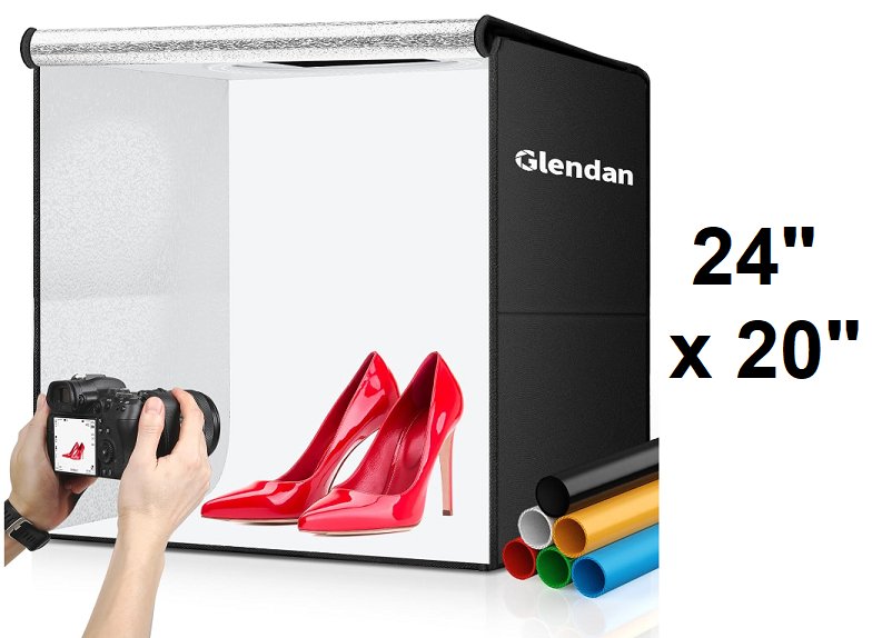 Glendan Light Box Photography - with 336 High Color Rendering Index LED Lights & 6 Color PVC Backdrops - 24" x 20''- black