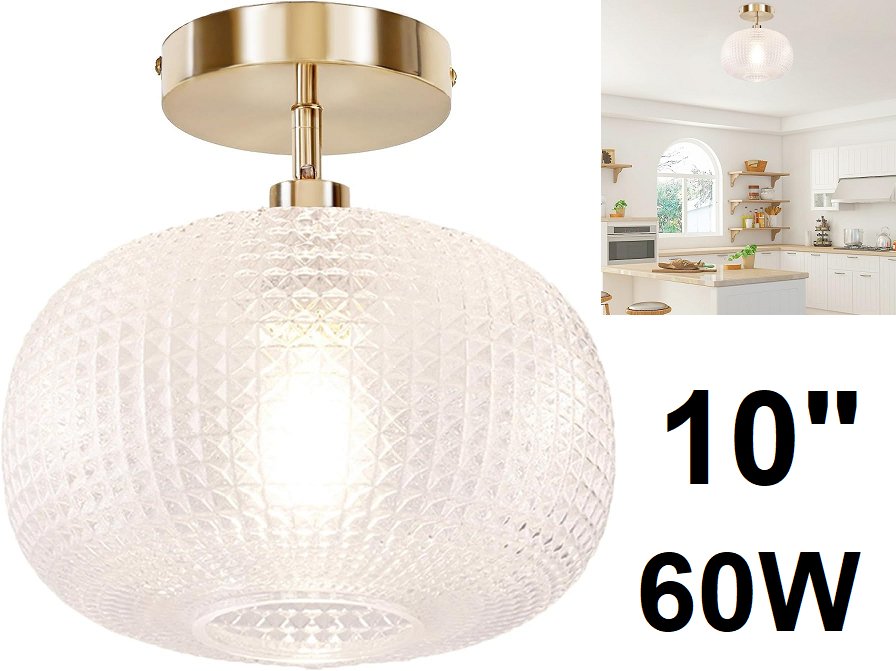 jolydoly semi flush mount hard wired vintage globe glass lighting fixture - 10" - 60w - french gold