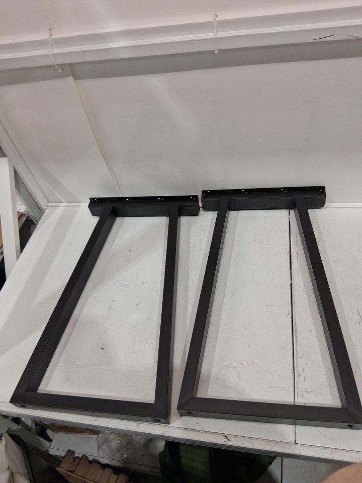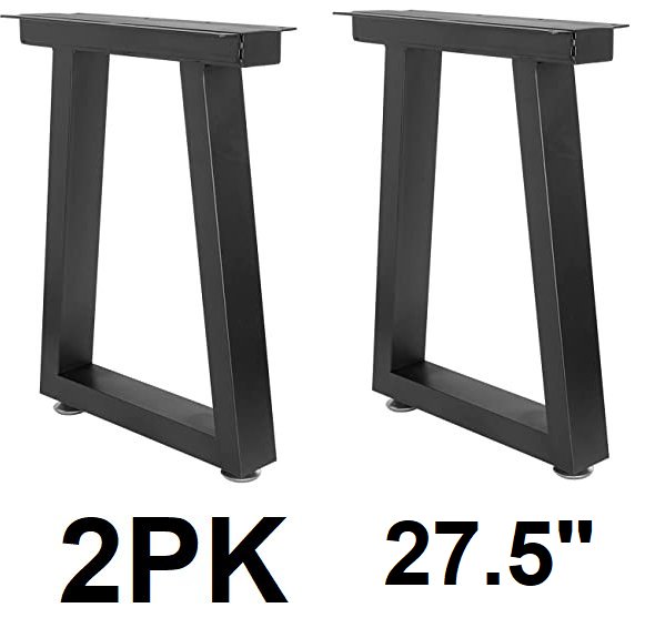 2PK TELAKENI TRAPEZOID STYLE METAL COFFEE TABLE BENCH LEGS WITH FEET PADS AND SCREWS, 27.5" - BLACK