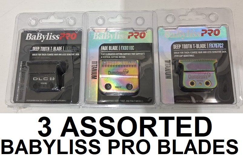 3 ASSORTED BABYLISS PRO BLADES - DEEP TOOTH T-BLADE & FADE BLADE (MODEL: FX707C2,FX8010C,FX707B02)