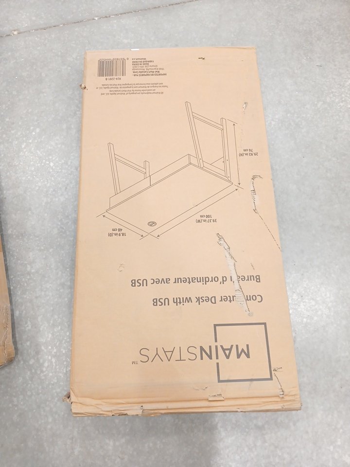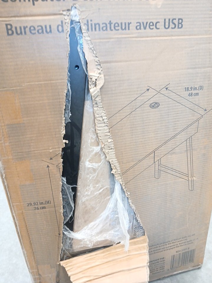 The box is unopened, but there is a large hole in the box. Through the hole we can see that there is not damage to the item