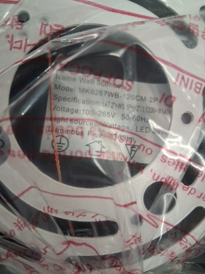 Waikmdv Modern Wall Sconce - 47" - Black - 100-265V - 39W - (MODEL : MK6267WB-120CM-1P)