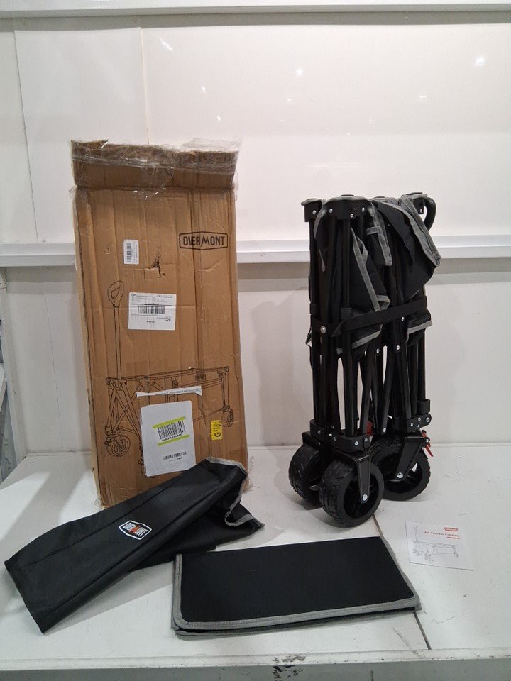 Overmont Foldable Collapsible Wagon Cart, Heavy Duty Utility Beach Wagon with Rotatable Wide Wheels - 330lb capacity - black/red