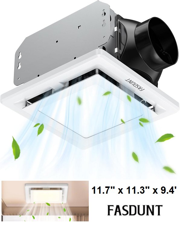 FASDUNT 2-in-1 Bathroom Exhaust Fan with Light - 110 cfm - 11.7" x 11.3" x 9.4" - white -(model:ef3s)