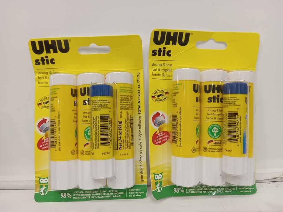 2 (4pc) UHU stick Strong & fast glue stick - includes small magic blue stick - non toxic - 21g /8.2g