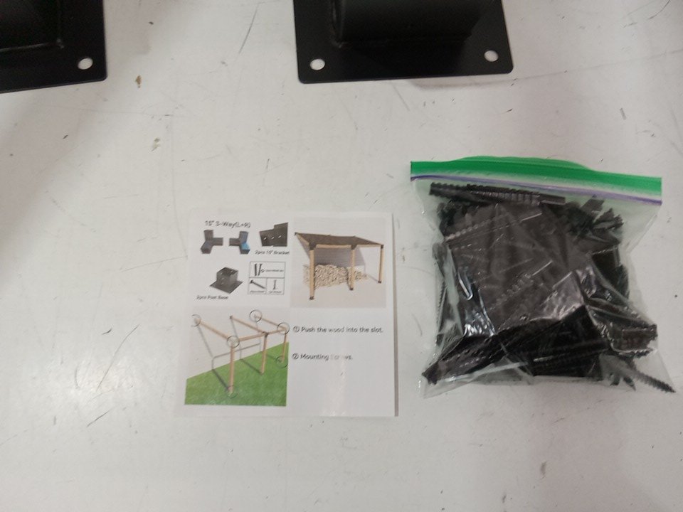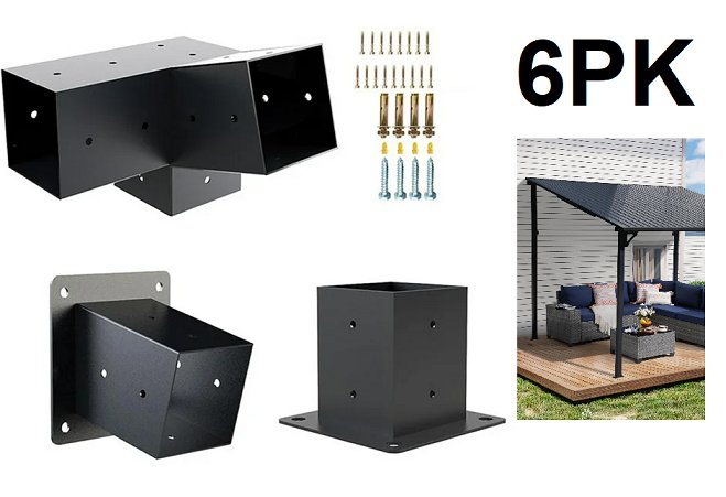 6pk slanted roof pergola brackets - 4" x 4" - 2 right/left 3-way joints - 2 slanted brackets - 2 straight brackets - black
