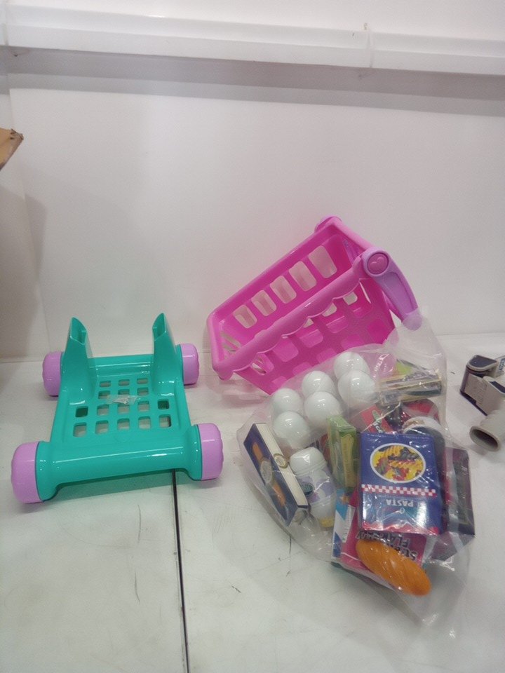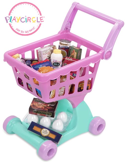 BATTAT PLAY CIRCLE SHOPPING GROCERY CART AND FOOD TOY FOR KIDS - PINK/BLUE