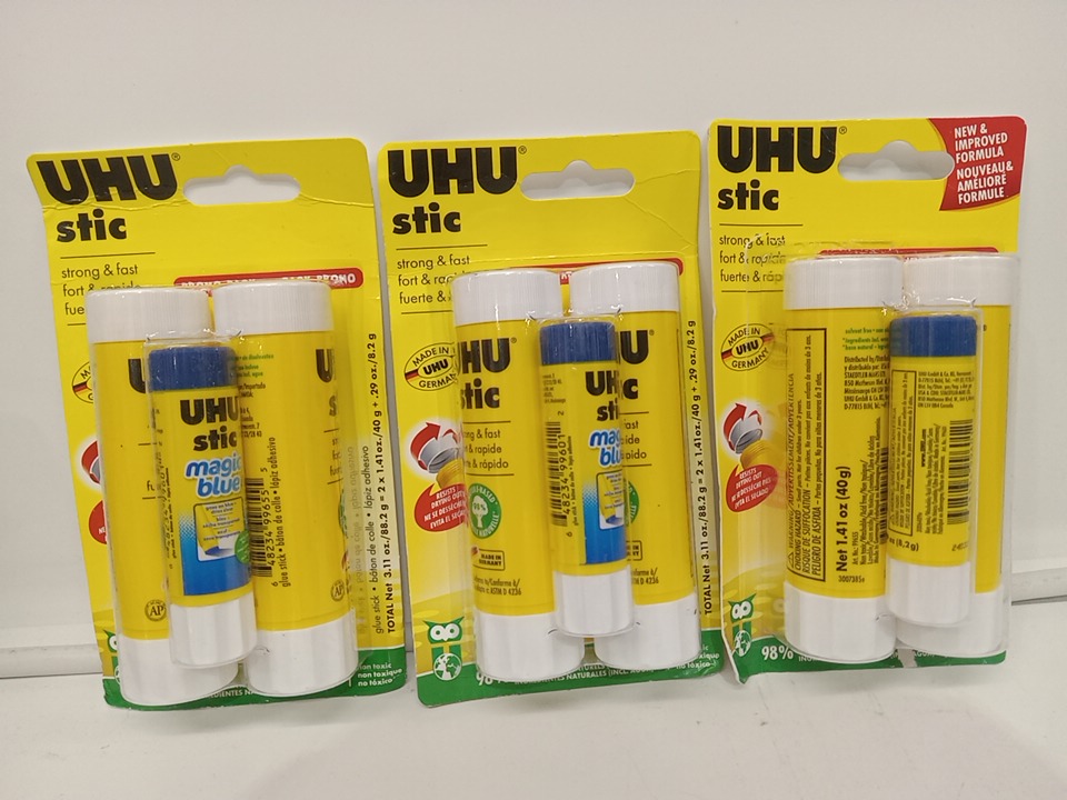 3 (3pc) UHU stick Strong & fast glue stick - includes small magic blue stick - non toxic - 21g /8.2g