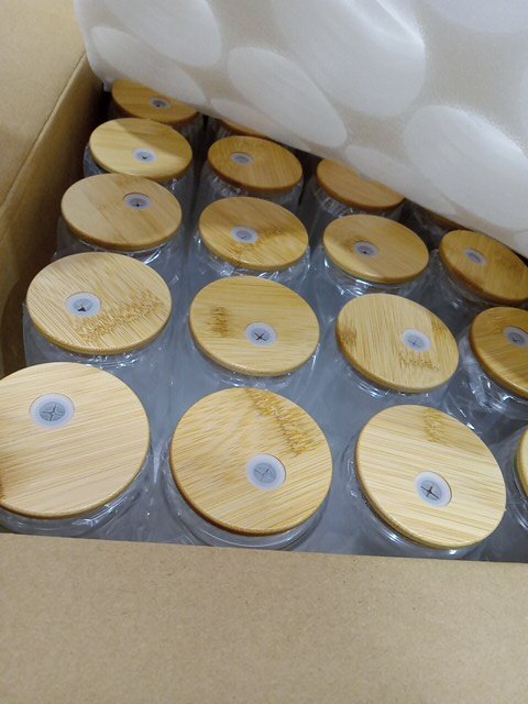 40pk drinking glass with bamboo lids and straws - 16oz- clear