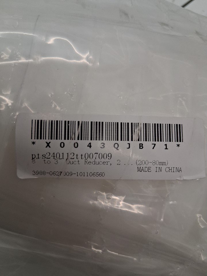 2PK Patikil 8" To 3" Inline Ducting Connector Duct Reducer - 8" TO 3" - White (Model: ‎pta231112tt000175eu)