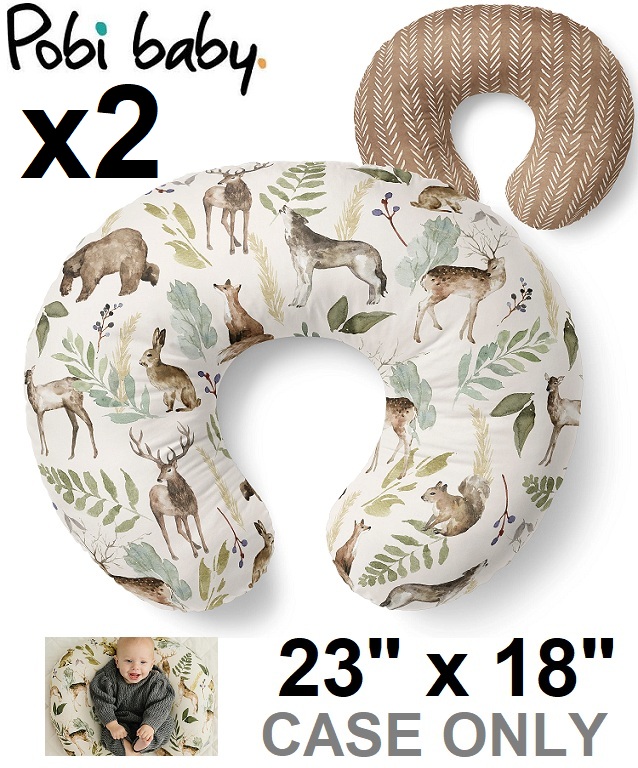 2 Pobi Baby Premium Fabric Nursing Pillow Covers - 23" x 18" - Wildlife Pattern
