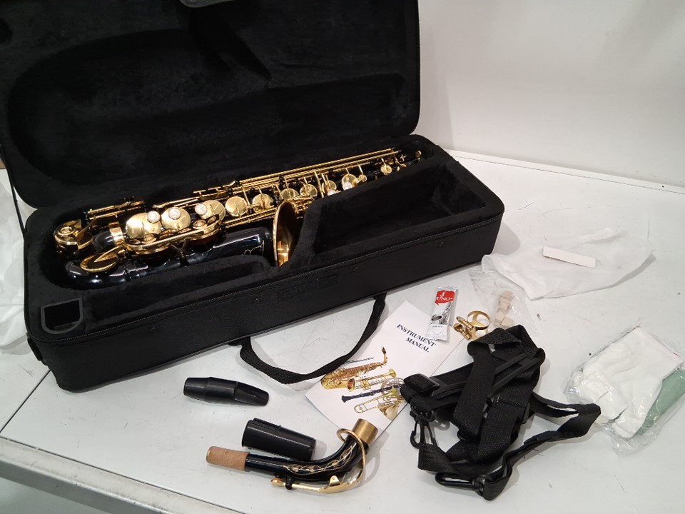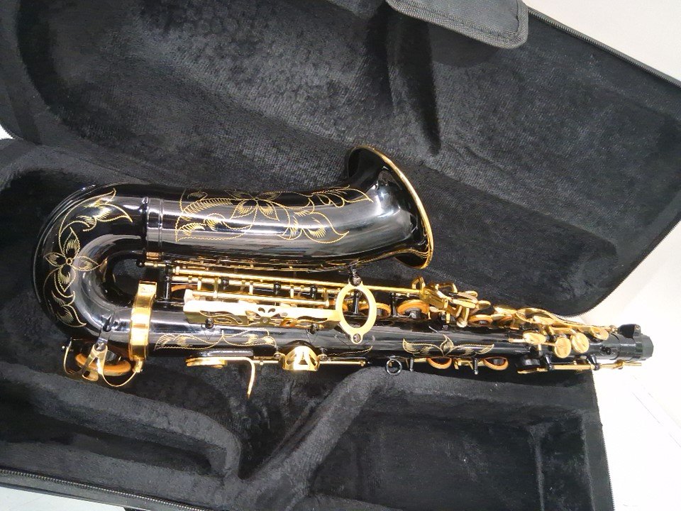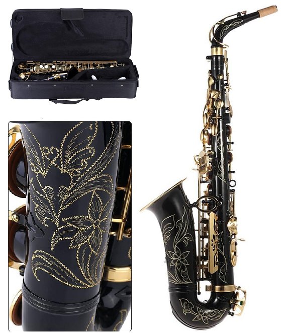 Btuty Alto Saxophone Eb SAX Brass Lacquered Gold E Flat 82Z Key Type Woodwind Instrument with Cleaning Brush Cloth Gloves Strap Padded Case - black with golden flower design (model: ‎GBJ3455761773547JG)